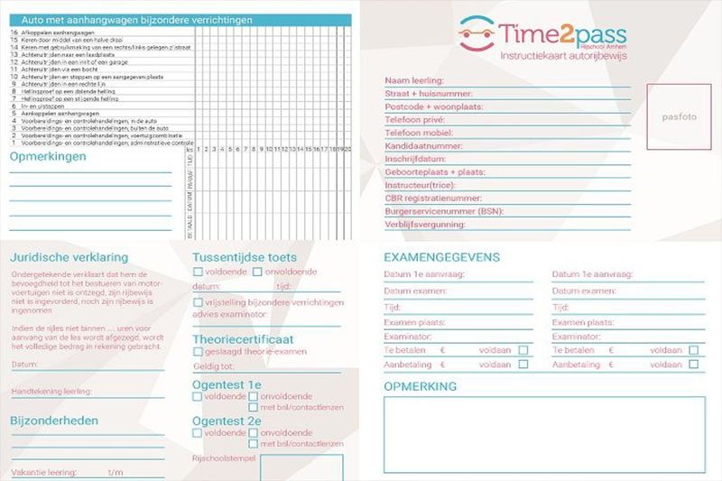 Op de instructievorderingskaart wordt alles vastgelegd; moeilijkheidsgraad en overzicht van alle lessen van de opleiding. In logische volgorde van makkelijk naar moeilijk. Op deze manier is het onmogelijk iets te vergeten of niet voldoende te leren.
